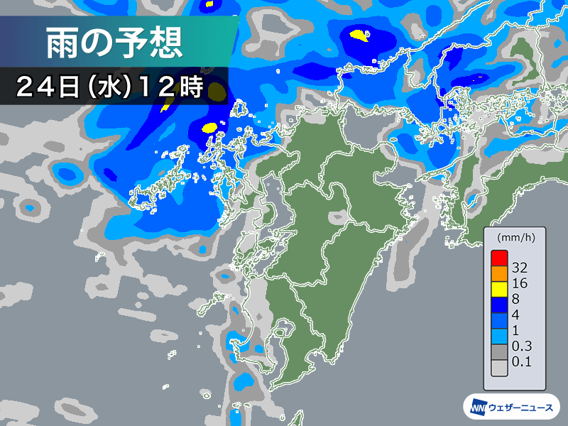 福岡市周辺でも昼前には雨が降り出す見込み、昼休みは天気の急変に注意が必要です。
